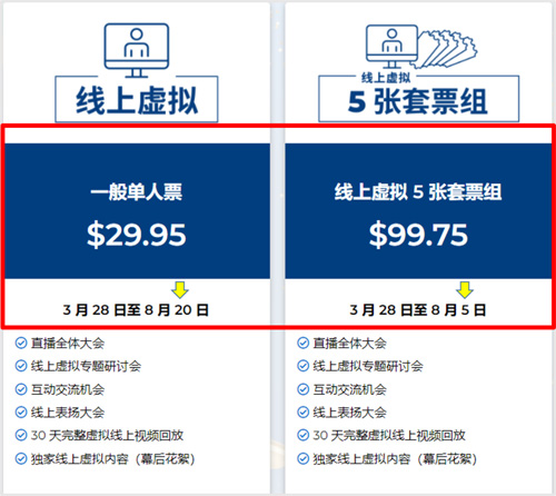 鉴于疫情的状况,考虑到出行安全及出国防疫事项,此次全球年会对中国市场仅开放线上观看权限,不设置线下的现场参与。