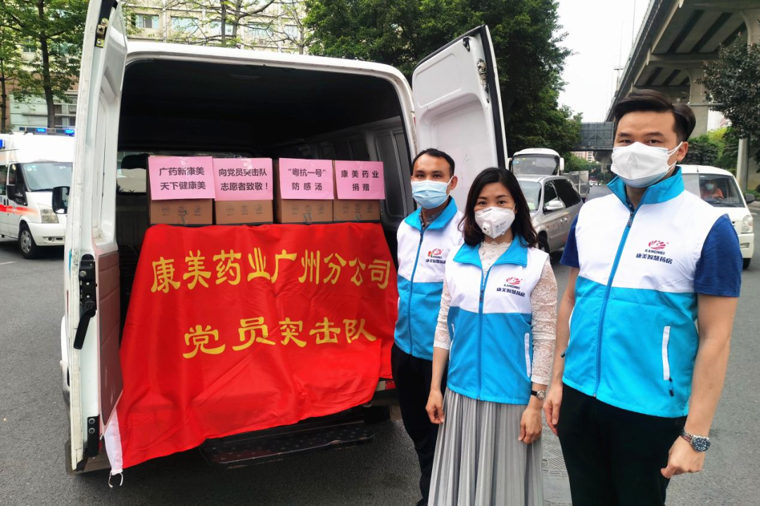 值得一提的是,为保证“粤抗一号”中药防感汤及时保质保量捐赠到各街道抗疫一线党员及志愿者手中,康美药业广州分公司党支部组织党员代表及业务、运营及市场员工代表第一时间随康美智慧药房配送队伍奔赴白云区棠景街道、钟落潭镇、云城街道,越秀区矿泉街道等受赠街道管控区现场,为抗疫一线党员及志愿者们配送“粤抗一号”中药防感汤,让党旗在抗疫一线高高飘扬。