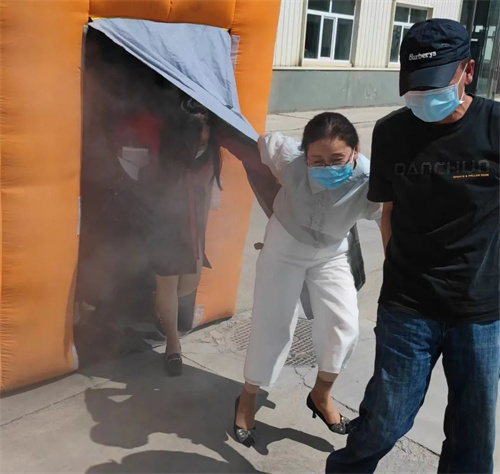逃生舱模拟演练中,体验火灾发生时在浓烟密布的情况下如何逃生,模拟火场断电、高温、黑暗、浓烟的场景下,亲身经历火场的考验,再次进入后,大多员工都能更冷静、理智地处理。