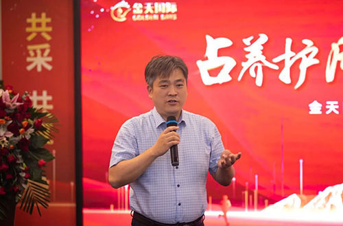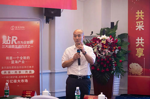 雪莲养护贴华润万家渠道优秀合作伙伴—殷震先生上台分享他与金天国际和雪莲养护贴从初识到合作再到共赢的历程和心得。