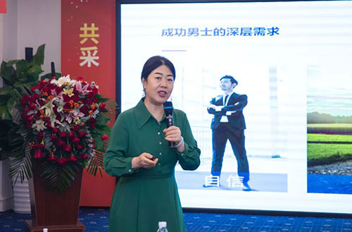 金天国际雪莲养护公司副总经理陀少丹现场分享了雪莲养护贴经营政策解析,对合作模式、激励及扶持政策进行了深度解读。