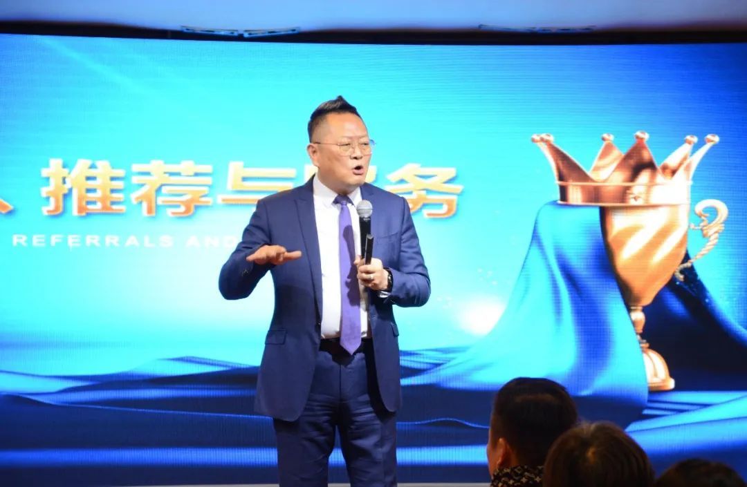 商学院专家组成员王勇老师为市场精英们讲解《销售、推荐与服务》课程。他将“销售”二字拆解为推销自己,售出认知,并提点大家要先百分百自用产品做起,学习产品知识,找到市场客户的需求点,解决客户问题,挖掘潜在客户。