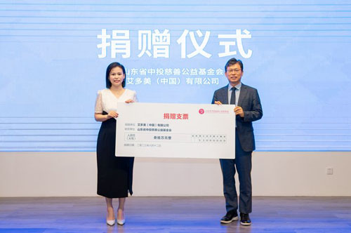 捐赠仪式上,山东省中投慈善公益基金会向艾多美回赠荣誉证书。双方共同表示,未来将在更多领域建立长期紧密的公益合作,帮助到更多需要帮助的人。