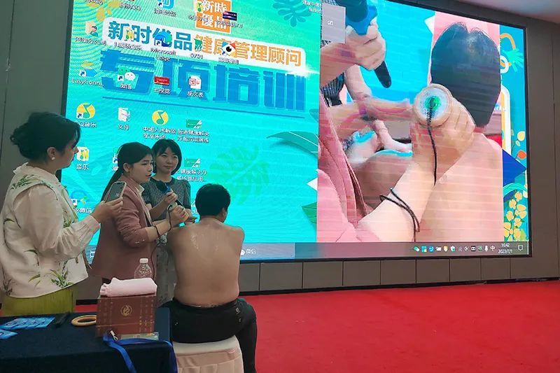 国珍健康研究院吴天歌、张利丹为大家讲解了《肠道健康解决方案》、《心脑血管健康解决方案》、《健康服务调理方案应用》、《扶阳痧像分析》、《健康服务设备纠偏》、《耳穴知识和操作》等健康解决方案场景应用的相关内容,并在实操演练中手把手指导大家扶阳罐的正确操作。培训内容丰富易懂、贴合需求、易于掌握,让大家收获颇丰。