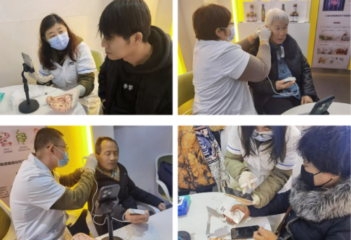 公司设立了健康服务设备体验区,为参加活动的新时代人进行了智能耳穴仪的健康监测服务,获得一片好评。