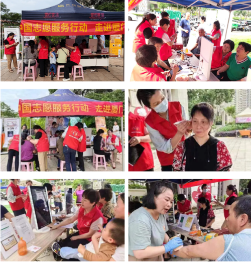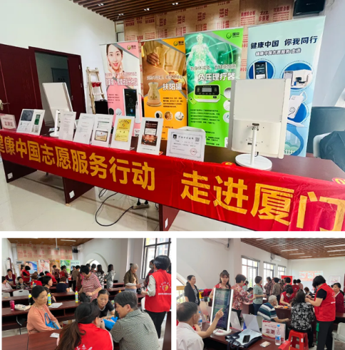 12日母亲节当天,健康顾问志愿者们走进厦门集美区世贸璀璨天城小区,为小区居民提供健康监测与健康管理服务。大家热情高涨,纷纷前来体验,在家门口度过了一个不一样的母亲节。