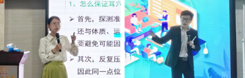 上海分公司讲师黄琳砚、甘肃分公司讲师崔文晋为参训学员带来了《健康顾问能力和标准素养》、《耳穴仪知识和操作》、《健康设备调理方案应用》等课程,围绕免疫力、心脑血管、肠道健康等解决方案相关内容进行讲解及教学演练。通过详细阐述、现场互动、演练实操让大家对以人为本的全面健康解决方案有了更加深刻的认识。