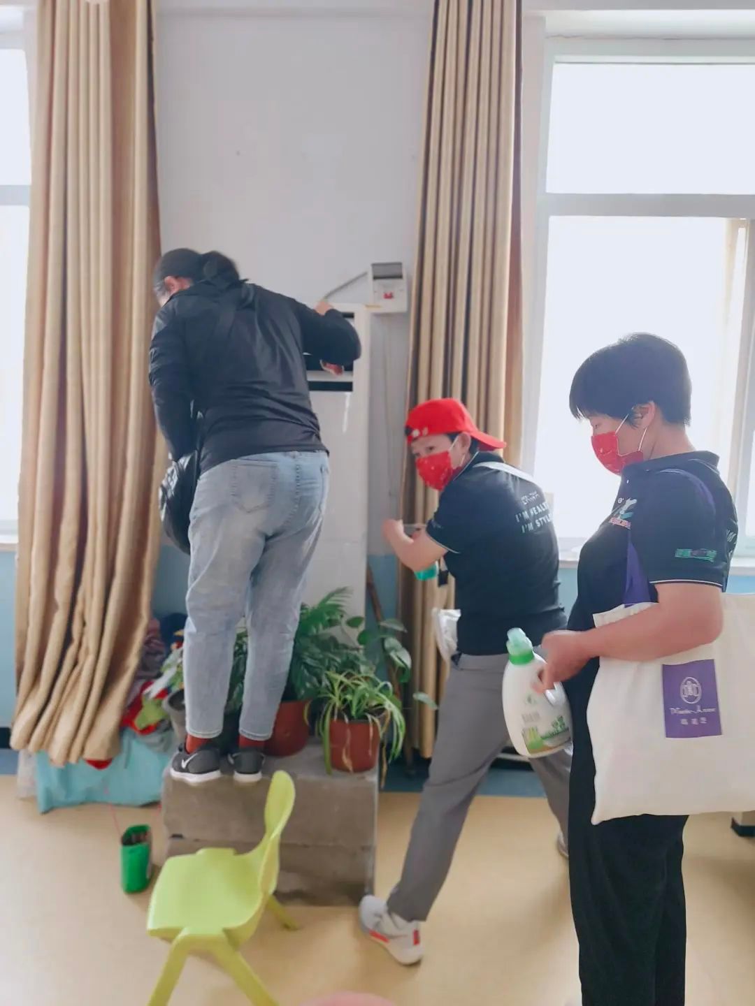 为了孩子们的健康着想,志愿者们自发组织约定每年定期给孤儿院免费清洗空调2次。