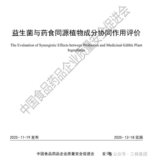 道道网讯 2025年11月19日,由中国食品药品企业质量安全促进会组织并主持起草,众多企业单位、高校及科研机构共同参与起草的《益生菌与药食同源植物成分协同功效评价》团体标准(标准号:T/FDSA 0104-2025)制定出台。